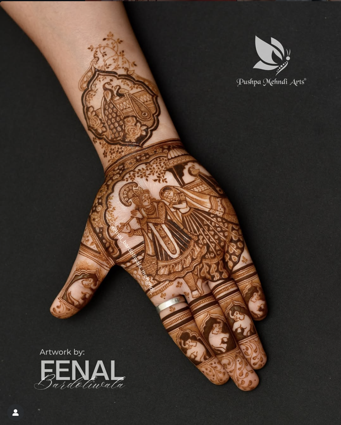 Elaborate full-hand bridal design featuring concentric mandalas, peacock motifs, and delicate jaali work. A timeless choice for the modern bride.